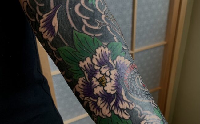 和彫りは、色、ボカシは手彫りで行います。 手彫りで彫った作品は、マシン彫りと比べて色落ちが少なく、年月が経過するとより色が馴染んで綺麗になるのが特徴です。 手彫りならではの色合い、墨の濃淡を是非ご体験ください。